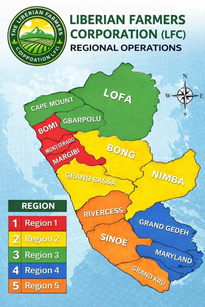 The Liberian Farmers Corporation (LFC) operates across specific geographic corridors designed to maximize Liberia’s diverse agro-ecological potential. Our strategic regional presence is dictated by soil suitability, climate resilience, and proximity to critical trade routes. By decentralizing our operations, LFC ensures that technical expertise and mechanized resources reach the “last mile” of the Liberian farming community.